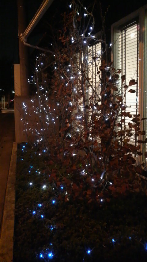 今日、外のイルミネーションをつくりました。